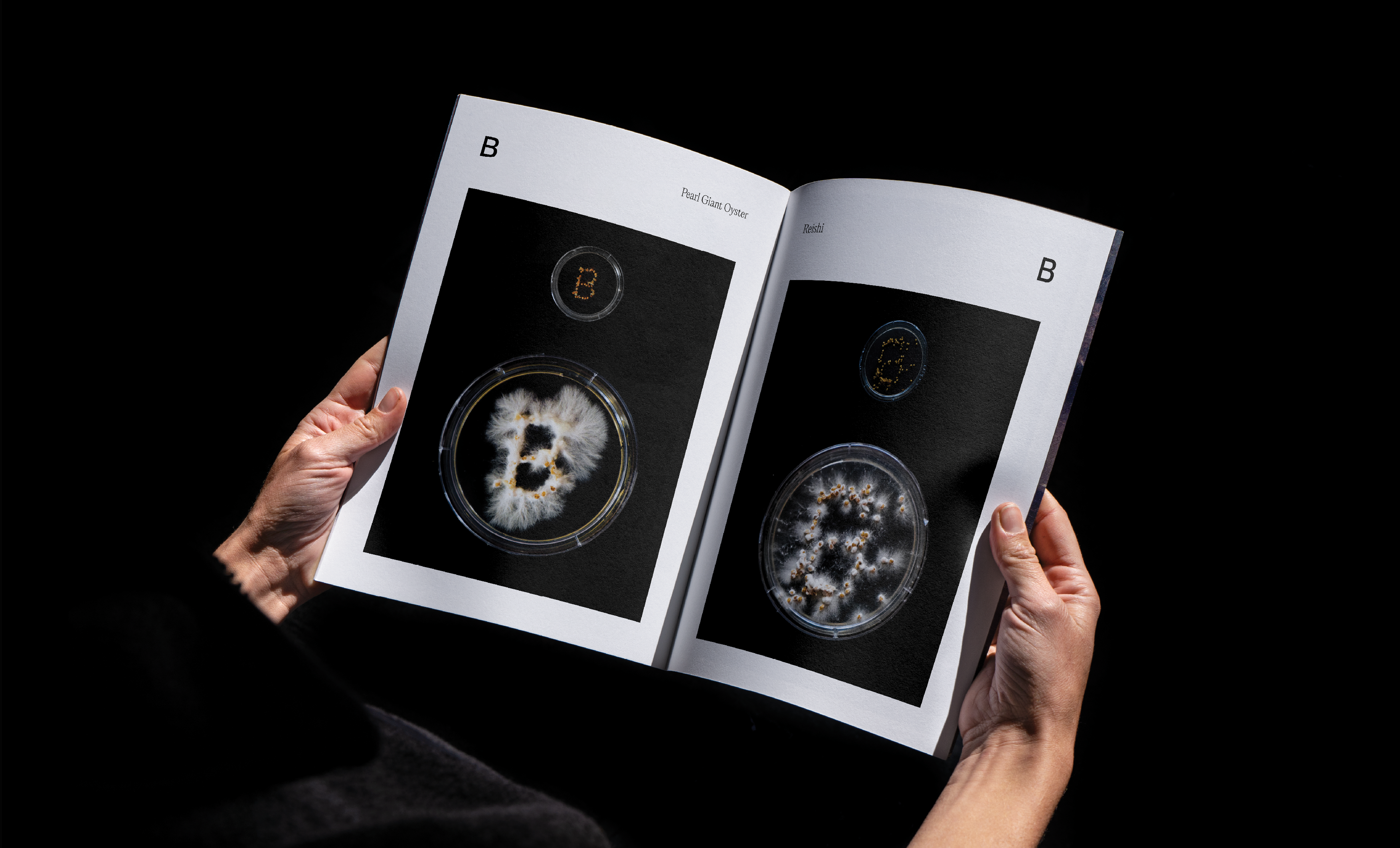 Investigating the unique structure and formation of the mycelium network as inspiration to develop a new, unconventional layout structure, distinct from the standard grid layout commonly used in visual design.